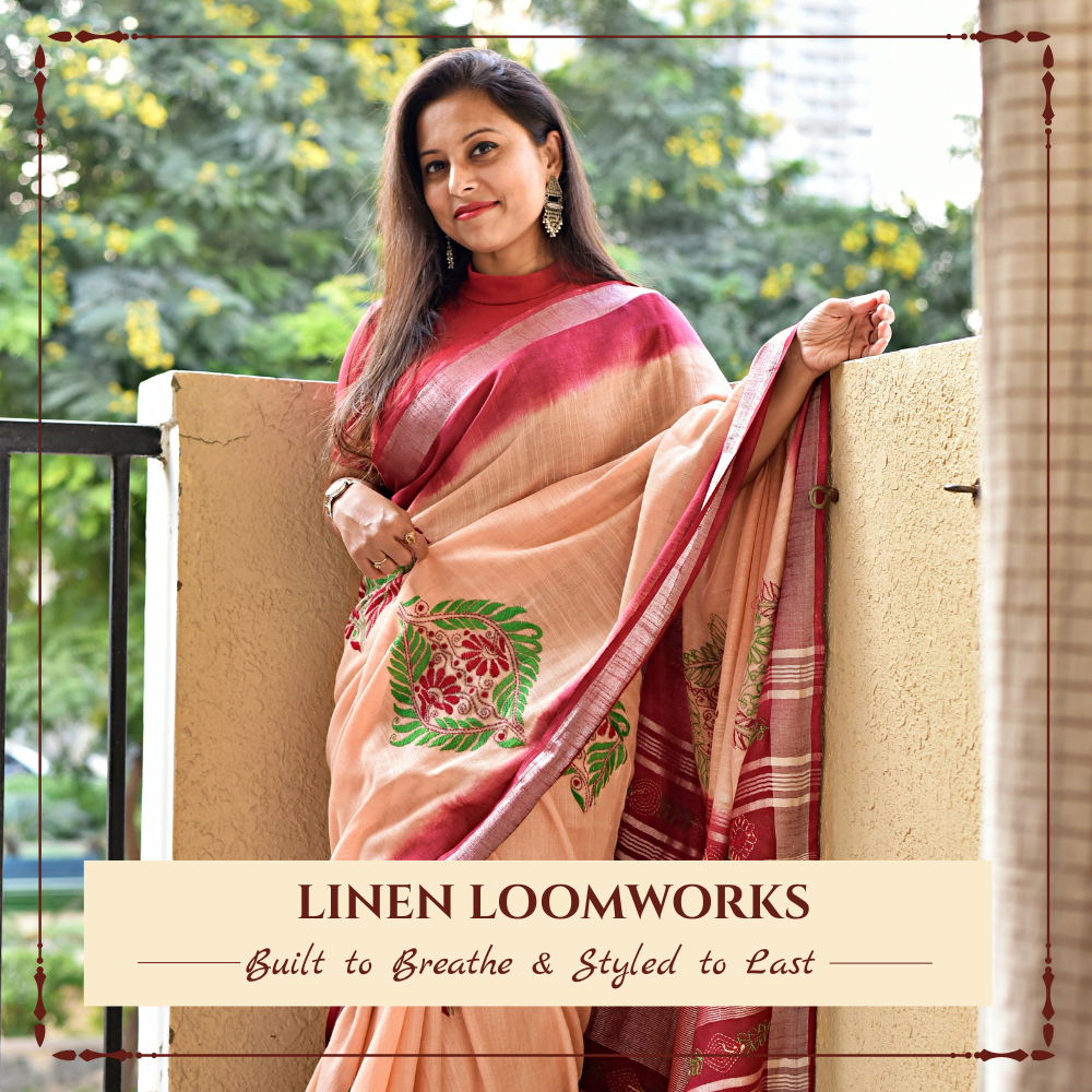 Ushoshi - Hand Block Print - Linen Cotton Saree